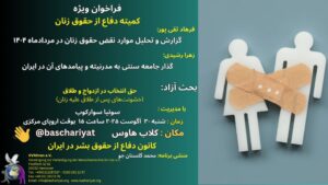 کانون دفاع از حقوق بشر در ایران برگزار میکند از شما فعالین حقوق بشر، آگاهان و همکاران گرامی دعوت میشود تا ما را در این جلسه ی سخنرانی همراهی فرمائید سخنرانی، پرسش و پاسخ، بحث و گفتگو سخنرانان و موضوع سخنرانی: شهرزاد حق وردی: گزارش و تحلیل موارد نقض حقوق بشر در آبان ماه ۱۴۰۴ میلاد طاهرآبادی: بررسی کنوانسیون حقوق کودک و مقایسه آن با قانون اساسی جمهوری اسلامی ایران شایان حق وردی: نقد و بررسی مفهوم امنیت در برابر آزادی در حقوق ایران معرفی کتاب: …