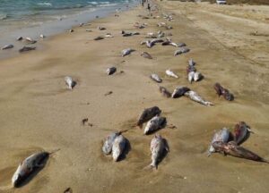 مرگ هزاران گربه ماهی در ساحل جاسک/ آلودگی نفتی، فعالیتهای صیادی و بیماری؛ سه علت احتمالی تلفات