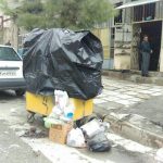 در عکسهای متعددی که فرستاده شده، مشاهده میکنیم که به جای جمعآوری زبالهها از سطح شهر، سطلهای زباله با کیسههای بزرگ پلاستیک پوشانده شده است.