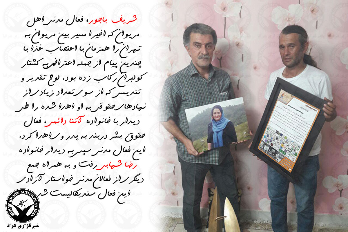 شریف باجور در شهریور ۱۳۹۶ همزمان با اعتصاب غذا، از مریوان تا تهران را در حمایت از رضا شهابی و آتنا دائمی و نیز اعتراض به کشتار کولبران و با شعار «عدم خشونت راه پیروزی انسانیت است» رکاب زد. جمعی از فعالان مدنی در تهران در میدان آزادی به پیشواز او رفتند. باجور لوح تقدیر و تندیسی را که شماری از نهادهای حقوقی به او اهدا کرده بود، در دیدار با خانواده دائمی، به پدر آتنا دائمی اهدا کرد.