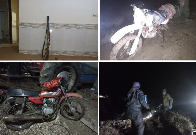 وی افزود: از این دو گروه متخلف یک گروه دستگیر و از آنان یک قبضه سلاح شکاری مجاز، لاشه ۴ قطعه پرنده چنگر و یک دستگاه موتورسیکلت ۲۵۰ کشف و ضبط شد.