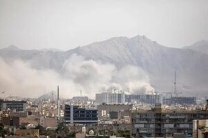 انفجارها، احتراق و مصرف بالای سوخت هواپیماها و جنگندهها موجب انتشار میزان بالایی از گازهای گلخانهای میشود. از طرف دیگر، انفجارها علاوه بر انتشار گاز دیاکسید کربن موجب انتشار آلایندههای محیطی مانند کربن سیاه میشود که تاثیر مضاعف گلخانهای میگذارد. انتشار گازهای گلخانهای برخلاف بسیاری از پیامدهای دیگر جنگ که تاثیرات محلی یا منطقهای دارند، اثرات کاملاً جهانی دارد یعنی تمام جهان متاثر از انتشار گازهای گلخانهای خواهد شد.