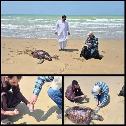 الهام آبتین افزود: کارشناسان اعلام کردند ضمن رصد و پایش میدانی در سواحل کنارک به یک لاک پشت سبز دریایی تلف شده نیز برخورد کردند و بلافاصله پس از کشف، اقدامات لازم شامل بررسی میدانی، ثبت مشخصات و بیومتری و برداشت نمونه ازمایشگاهی، بر روی این گونه ارزشمند دریایی انجام شد تا اطلاعات دقیقتری از وضعیت زیستی آن به دست آید.